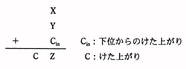 (2) 下位からのけた上がり Cin を考慮して1ビット同士を加算する全加算器の真理値表を,表2に示す。