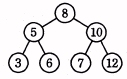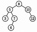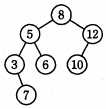 空の2分探索木に,8,12,5,3,10,7,6 の順にデータを与えたときにできる2分探索木はどれか。
