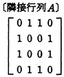 問03 隣接行列で表されるグラフ隣接行列 A で表されるグラフはどれか。ここで,隣接行列とは,n 個の節点から成るグラフの 節点 Vi と Vj を結ぶ枝が存在するときは 第 i 行第 j 列と第 j 行第 i 列の要素が 1 となり, 存在しないときは 0 となる n 行 n 列の行列である。