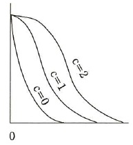 問77 品質管理における検査特性曲線品質管理における検査特性曲線( OC 曲線)は,通常,横軸にロットの不良率を, 縦軸にロットの合格率を目盛ったものである。大きさ N のロットから, 大きさ n のサンプルを抜き取り,このサンプル中に見いだされた不良個数が合格判定個数 c 以下のときには ロットを合格とし,c を超えたときはロットを不合格とする。 N と n を一定にして c を 0, 1, 2 と替えたときの,OC 曲線の変化の傾向を表す図はどれか。