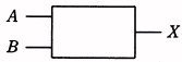 二つの入力と一つの出力をもつ論理回路で,二つの入力 A , B がともに1のときだけ, 出力 X が0になるものはどれか。